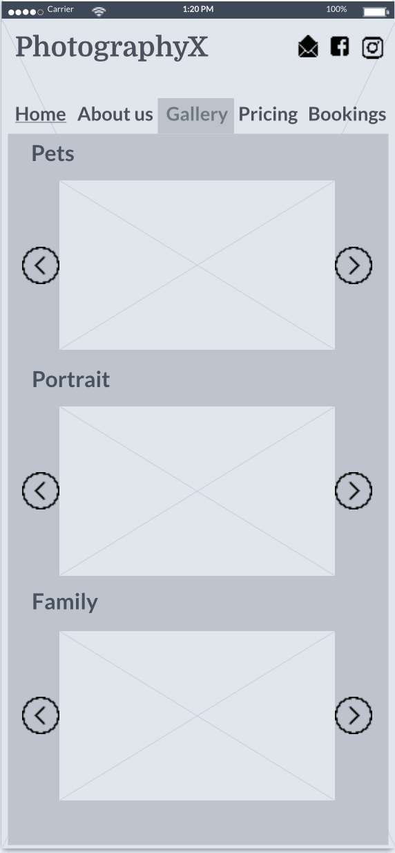 As anyone is a possible user of photography services it is hard to boil them down to a small number of personas so my aim was to design for a wide range of users.