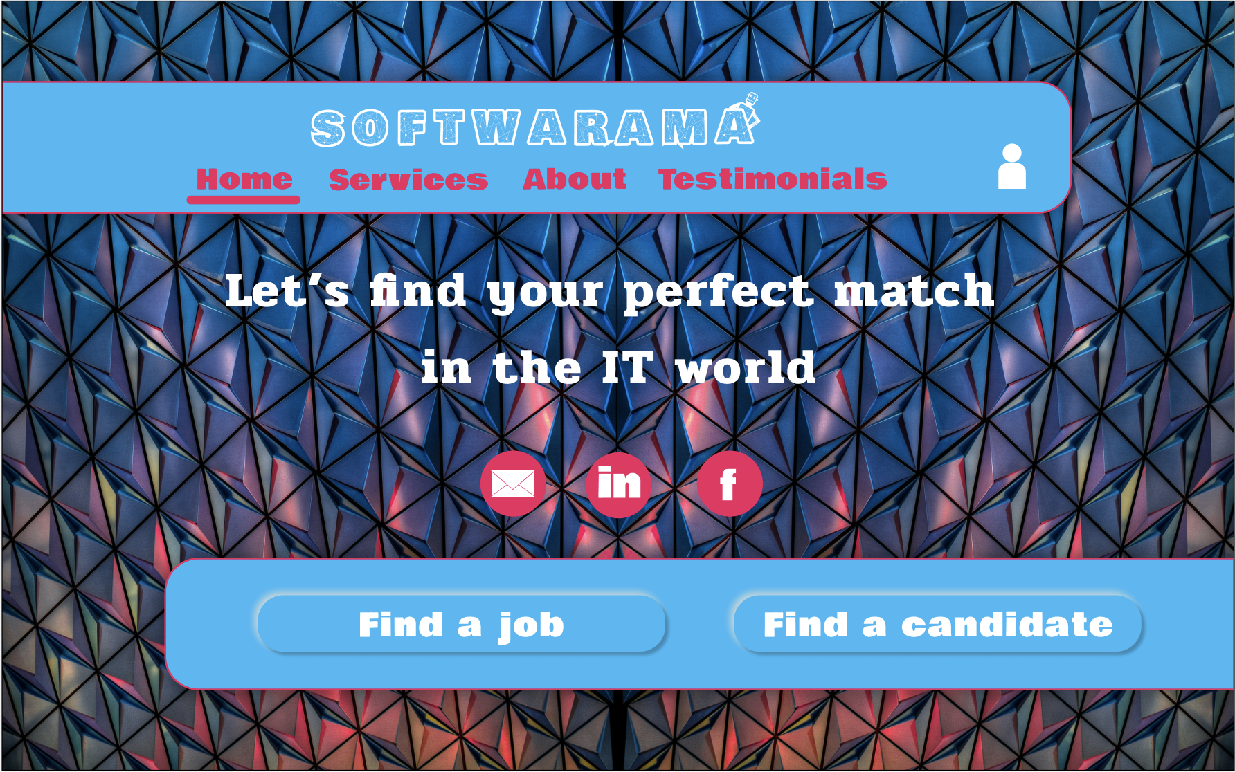 The following is a short story about my efforts trying to design a mockup home page for job agency. The agency would specialise in bringing businesses and IT professionals together. My challenge was to design an uncluttered, intuitive and visually compelling home page. Throughout the project, I used Design Thinking approach.